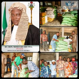 The Speaker of the Ebonyi State House of Assembly, Rt. Hon. Moses Ije Odunwa, representing Ikwo South Constituency, has distributed over two hundred and forty-four bags of Fertilizers in his constituency in Ikwo LGA of Ebonyi state.